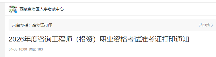 - · 西藏2025年咨询工程师考试准考证打印时间:4月8-11日