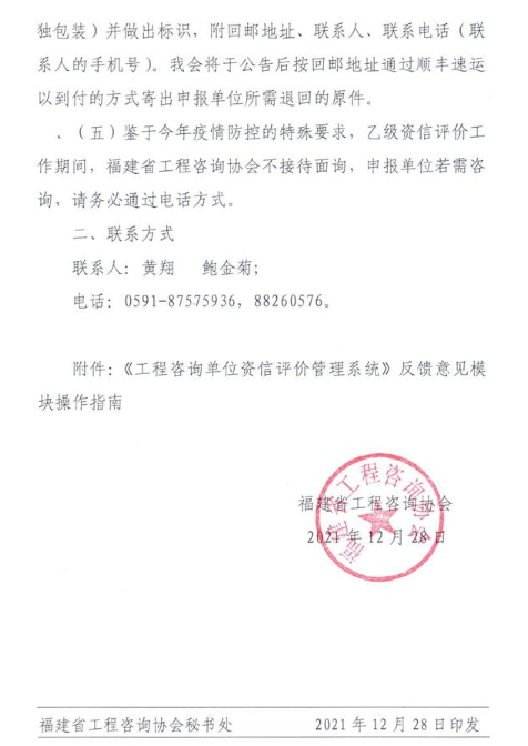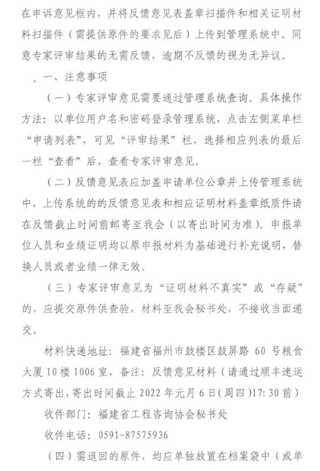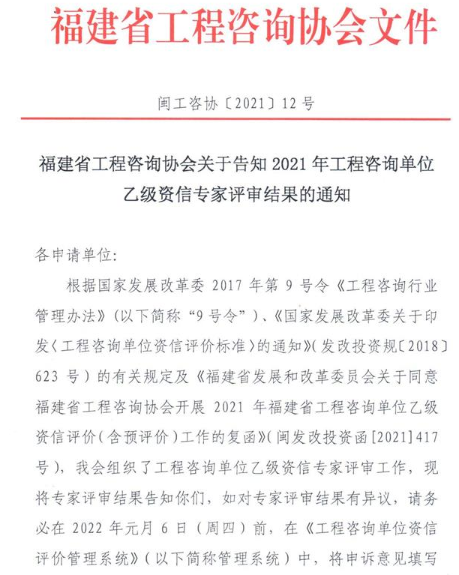 福建关于告知2021年工程咨询单位乙级资信专家评审结果的通知