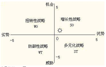 根据SWOT分析图可以知道对处于右上角的企业所需采取的策略是( )。 A.扭转性战略 B.增长性战略 C.防御性战略 D.多元化战略