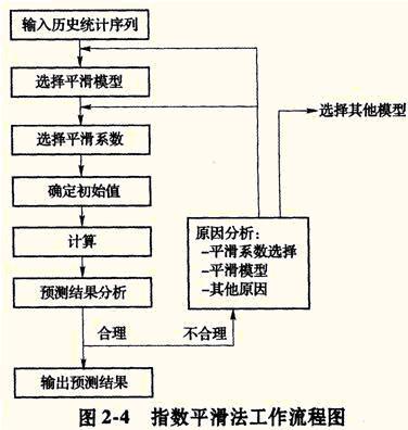 A.输入历史统计序列→预测结果分析→选择平滑系数→确定初始值